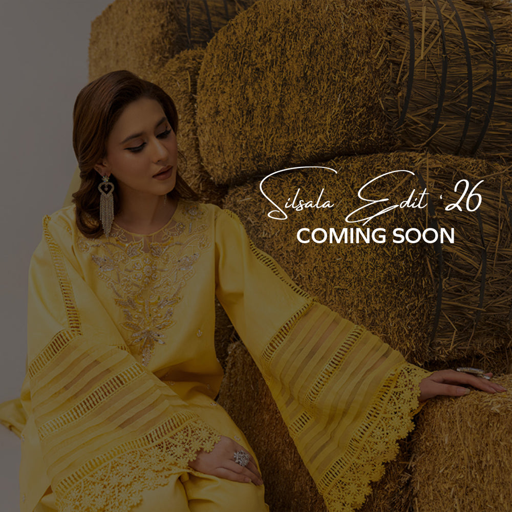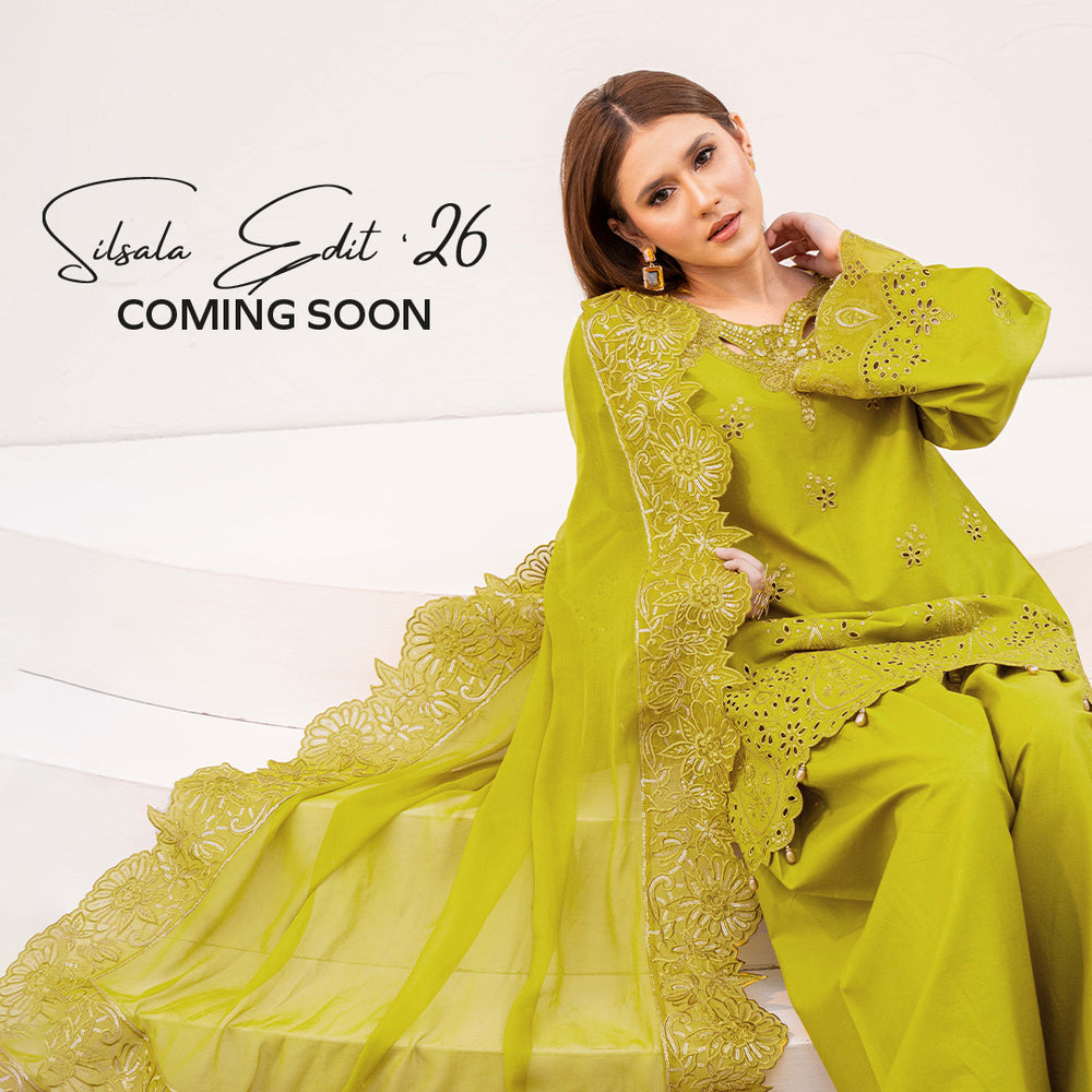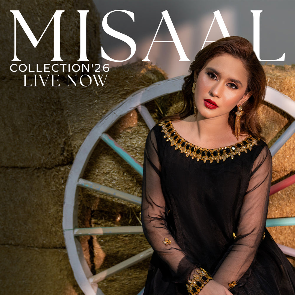 Exude timeless elegance with this exquisite 3-piece stitched viscose ensemble, designed to perfection with intricate craftsmanship. The farshi shalwar is paired with a beautifully pleated front kameez, featuring a delicately adorned neckline on adda work, embellished with hand-placed pearls, kulfi, pipe, sequins, and stones, all in striking black. The sleeves are enhanced with crochet lace and pearl detailing, adding a graceful finish. Completing the look is a sheer organza dupatta, embellished with hand-sequins throughout and bordered with heavily embroidered viscose patches on both pallus, finished with fine cutwork. A masterpiece of artistry, sophistication, and timeless charm.